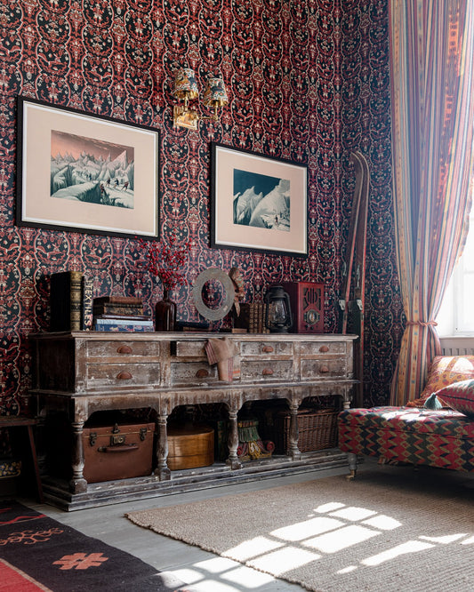 Mind The Gap - FOLK EMBROIDERY Crimson Wallpaper - WP30014