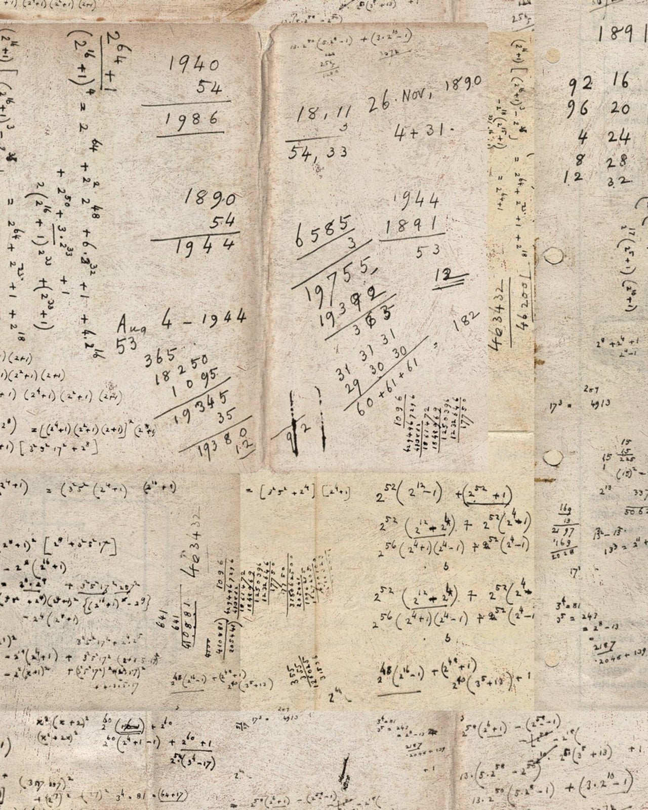 An intriguing collection of hand-written mathematical formulas and calculations.