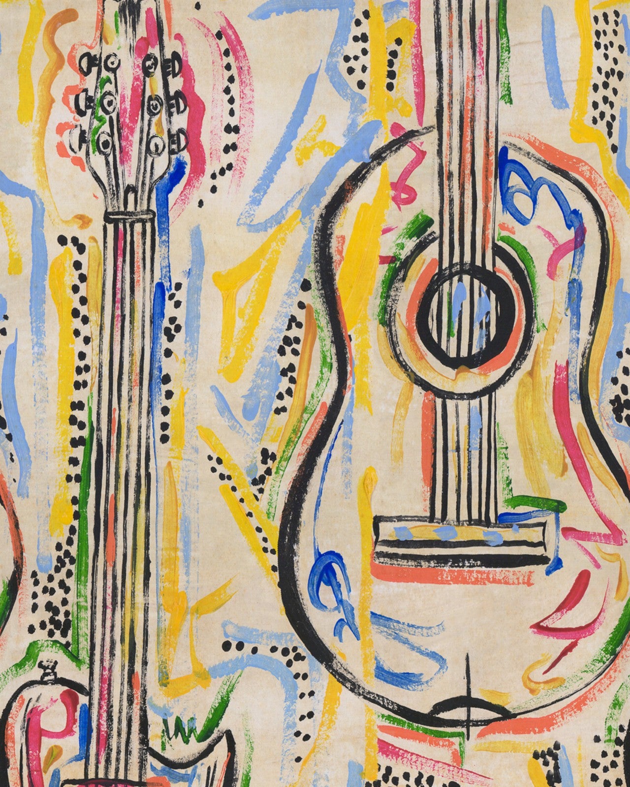 Woodstock was all about the music and behind the music lies the magic of the instrument. The HARMONY wallpaper celebrates the form and beauty of the guitar, set amongst swirling abstract lines in psychedelic colours which emulate the dreamlike atmosphere of the festival itself. Get lost in the sounds of acoustic and electric guitars, playing riffs, or strumming chords to the rhythm of the song which fills the room. Dream of your favourite music genre and let the guitars take you there as they stand out across both and black backdrops.