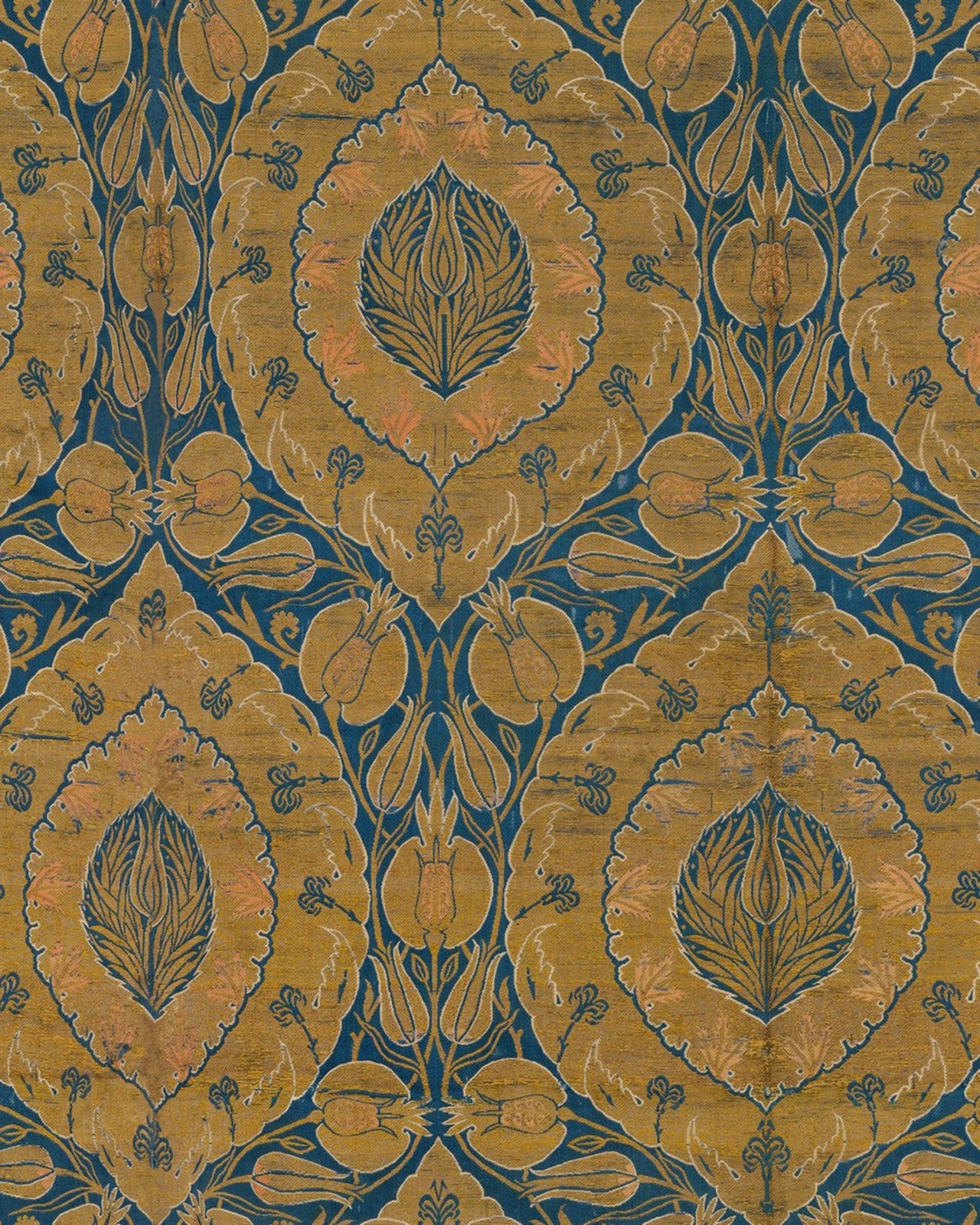 A luxurious piece which combines bold colors, shapes and natural texture, inspired by textiles from ancient Mesopotamia.