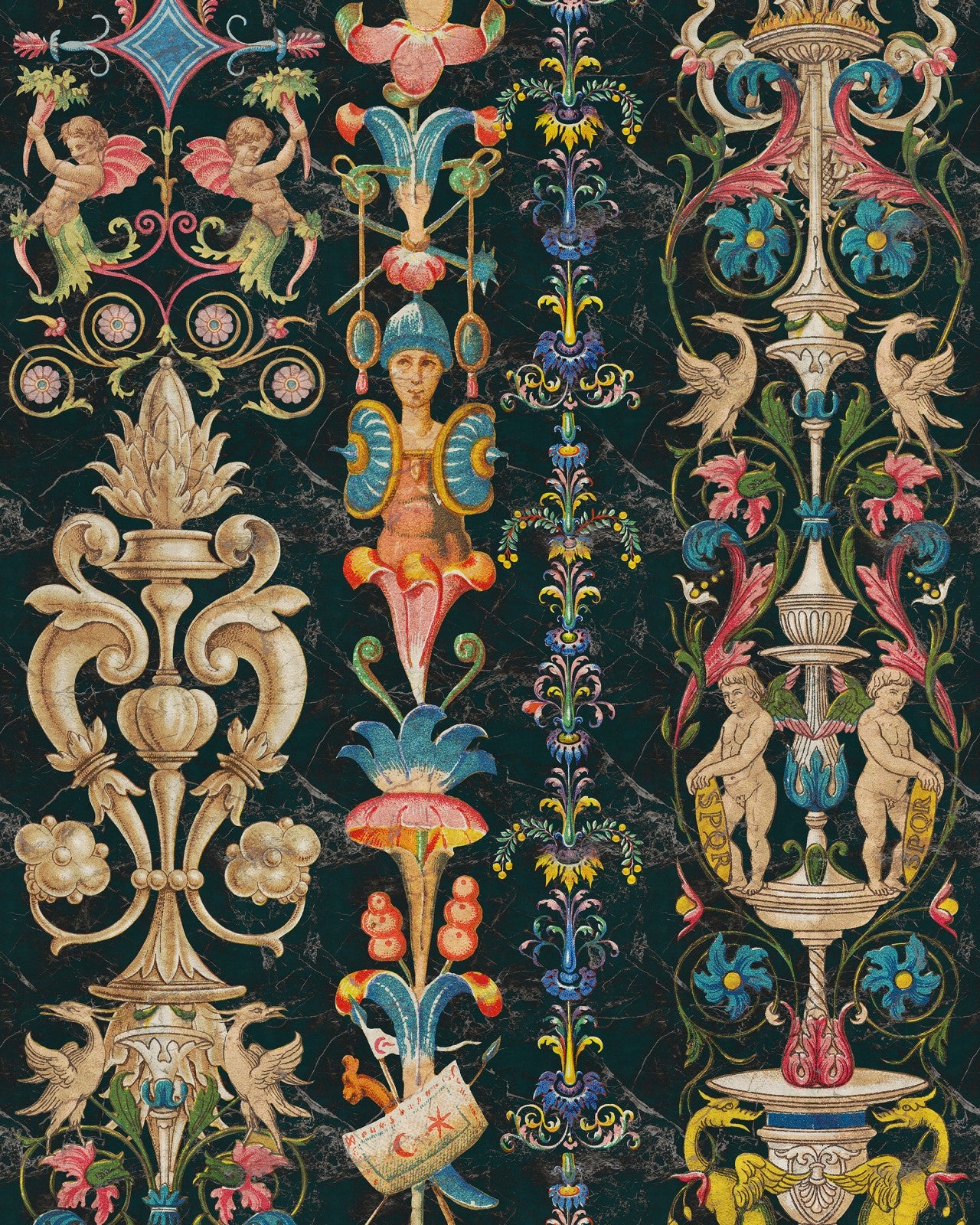 An outstanding decorative design, inspired from probably the most important period of humanity, the Renaissance. This wallpaper will transpose you into a different world full of emotional charge. The design is printed over 3 rolls.
