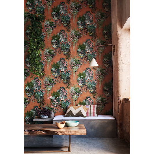 Cole & Son - Talavera - Rose & Spring Green On Terracotta - 117/9025.CS.0