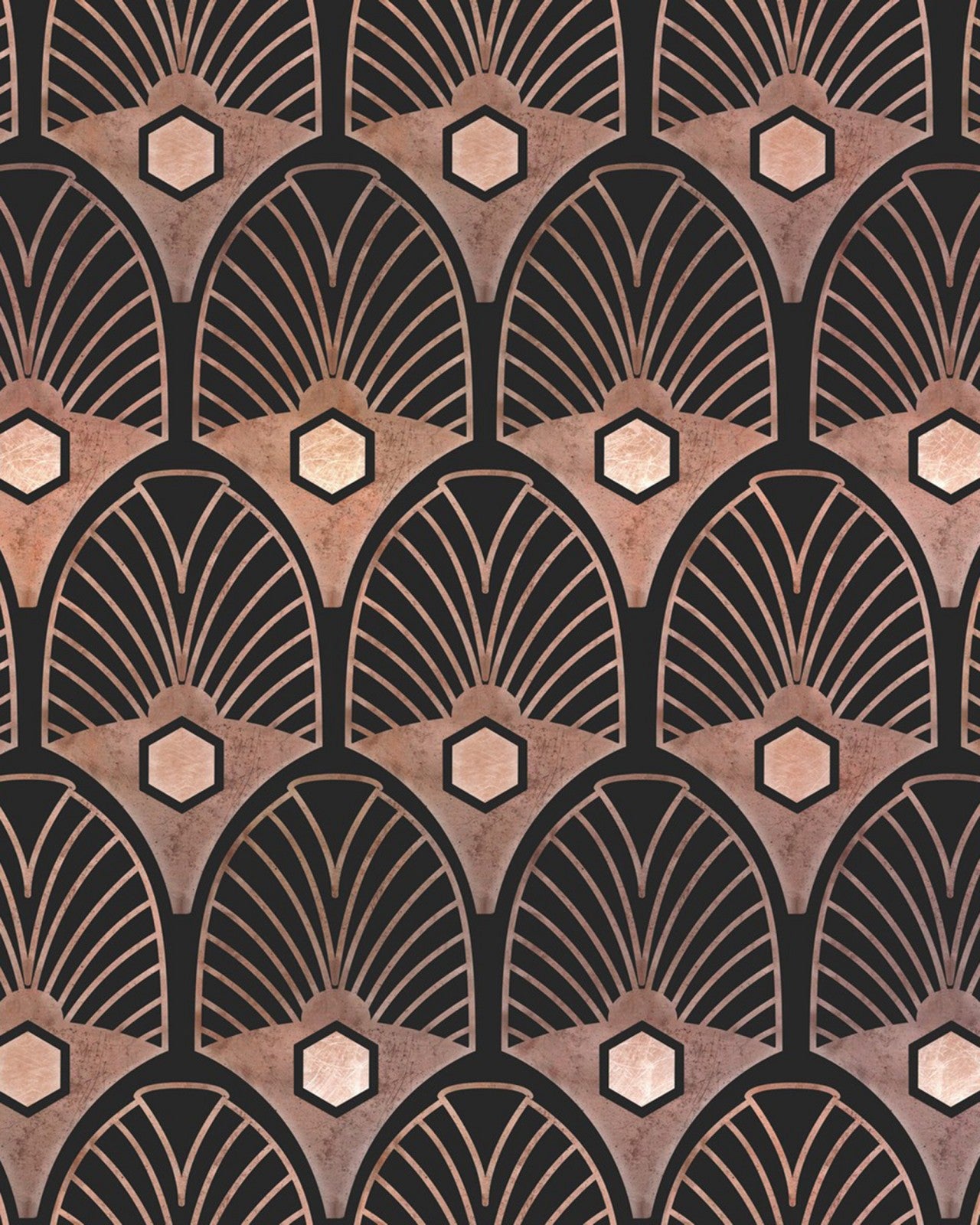 A splendid piece from our Metropolis collection, with repetitive pattern in copper shades on a black background.