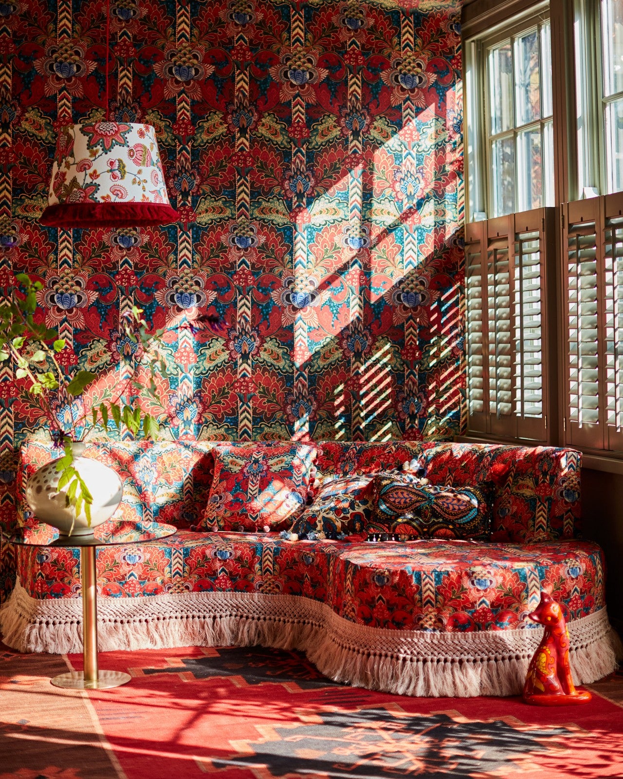 Inject an explosion of colour into any space with this exquisite fusion of dazzling tones and opulent detail. Referencing the freedom of expression through the Woodstock era, the PSYCHEDELIA print is for those who want to celebrate all forms of life without limitation, allowing the vivacious print to command the eye and demand attention. The central motif of feather-like leaves, surrounded by luxurious colour combinations and profiles, adds a lavish touch to the walls, with the warmer tones elevating the room entirely.