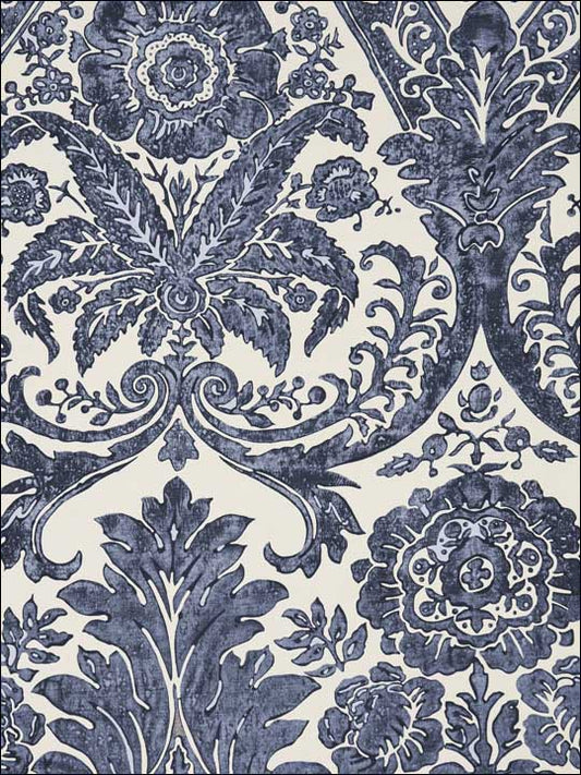 Scalamandre SC0003WP88354 Luciana Damask Print Denim Wallpaper