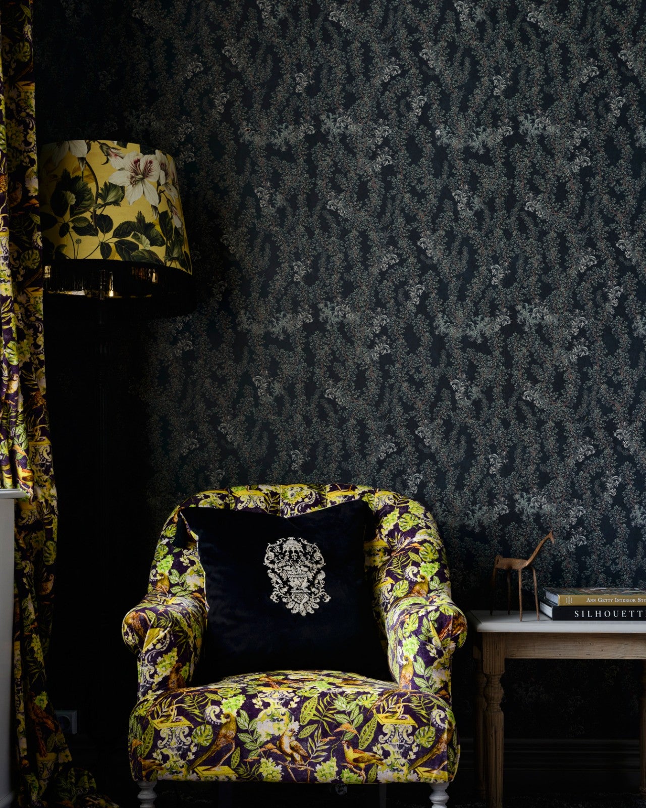 A soft foliage composition with distinctive hand painted ivy branches climbing on the wall. A neutral style wallpaper ideal for decorating all the walls in the room or to combine it with statement style wall covering. Available in dark and soft tones.