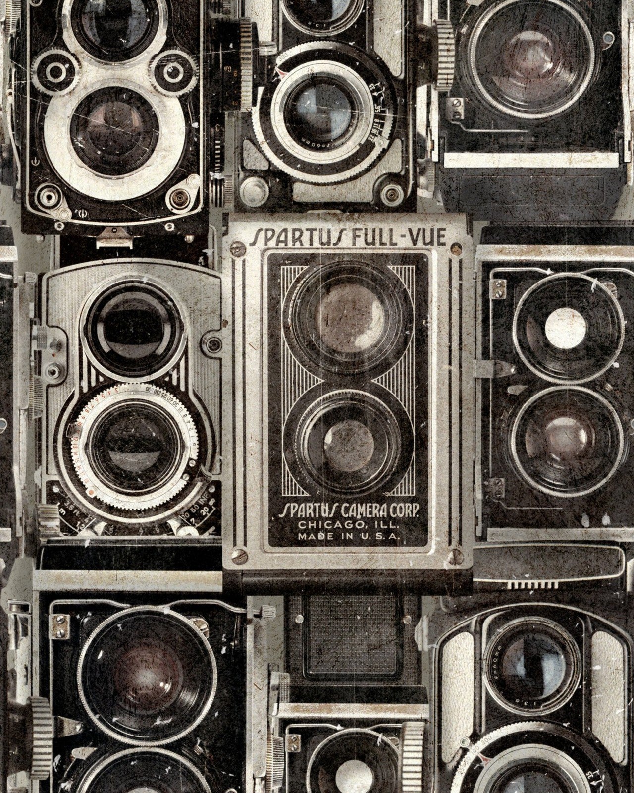 An outstanding design with retro vibes, featuring vintage camera lances in dark colors.
