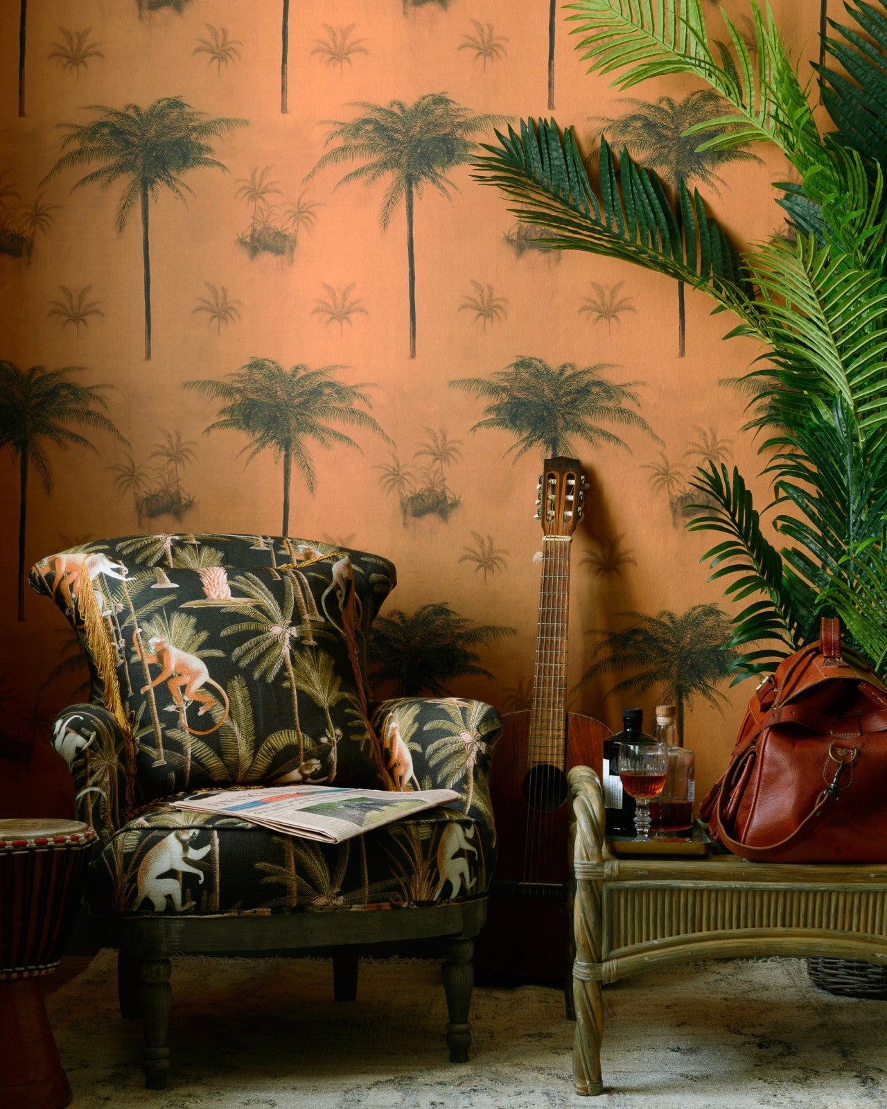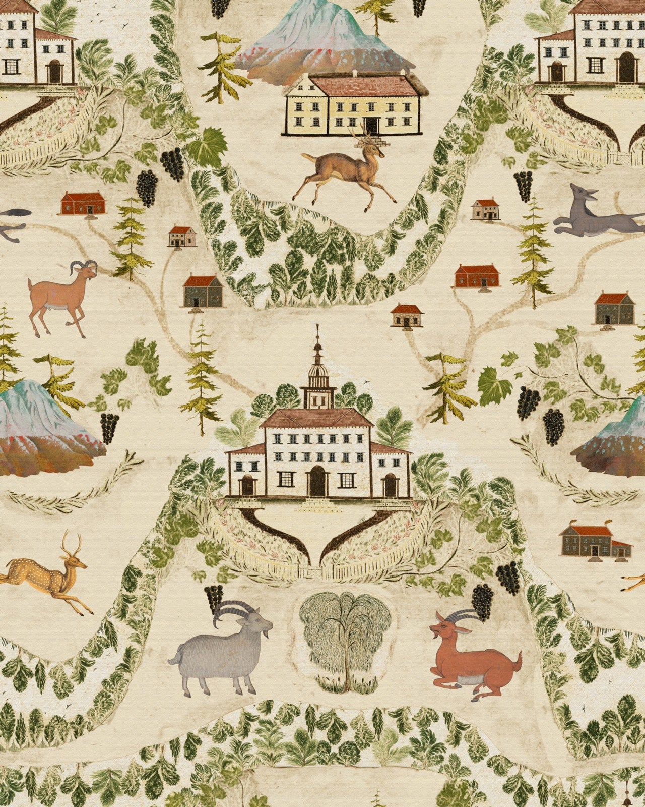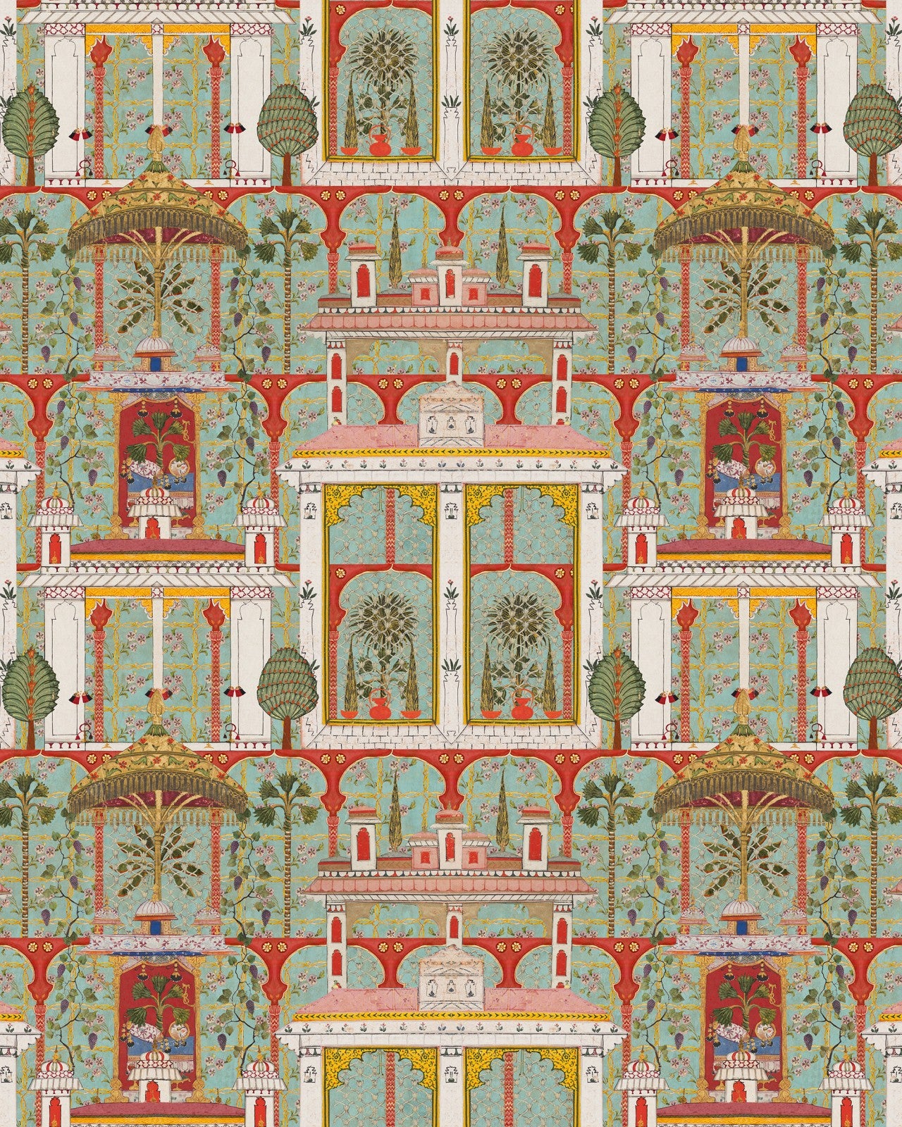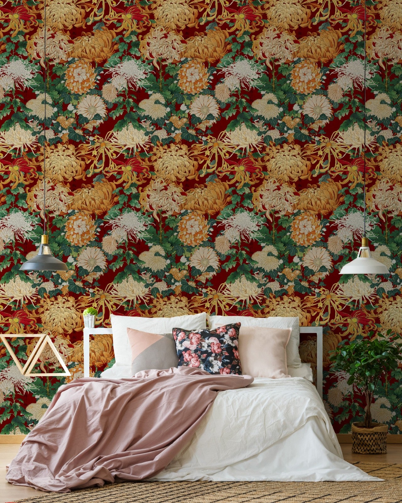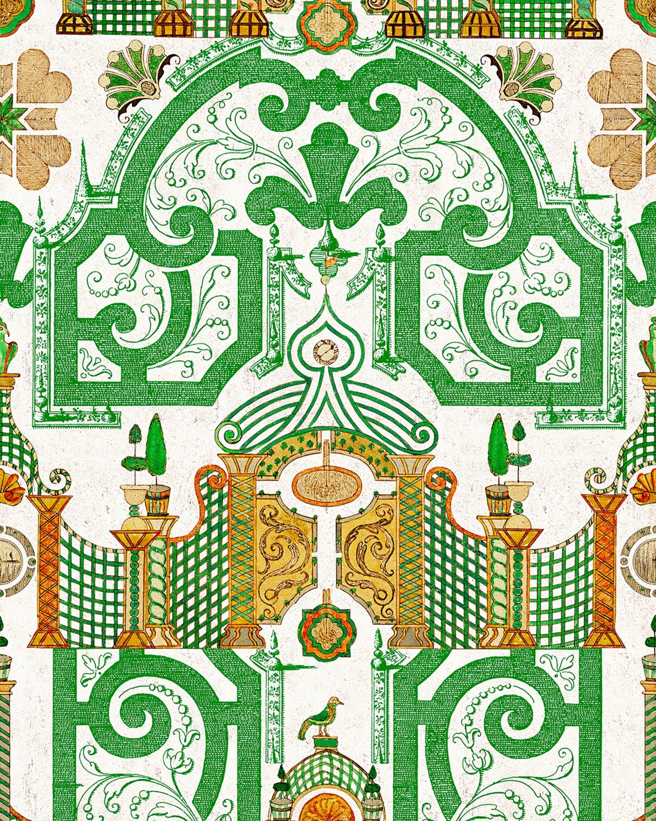 • Wallpaper, Green, Mustard Yellow, Red, White