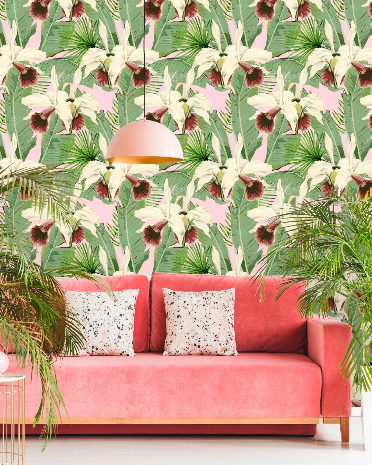• Wallpaper, Green, Pink, Taupe, Yellow