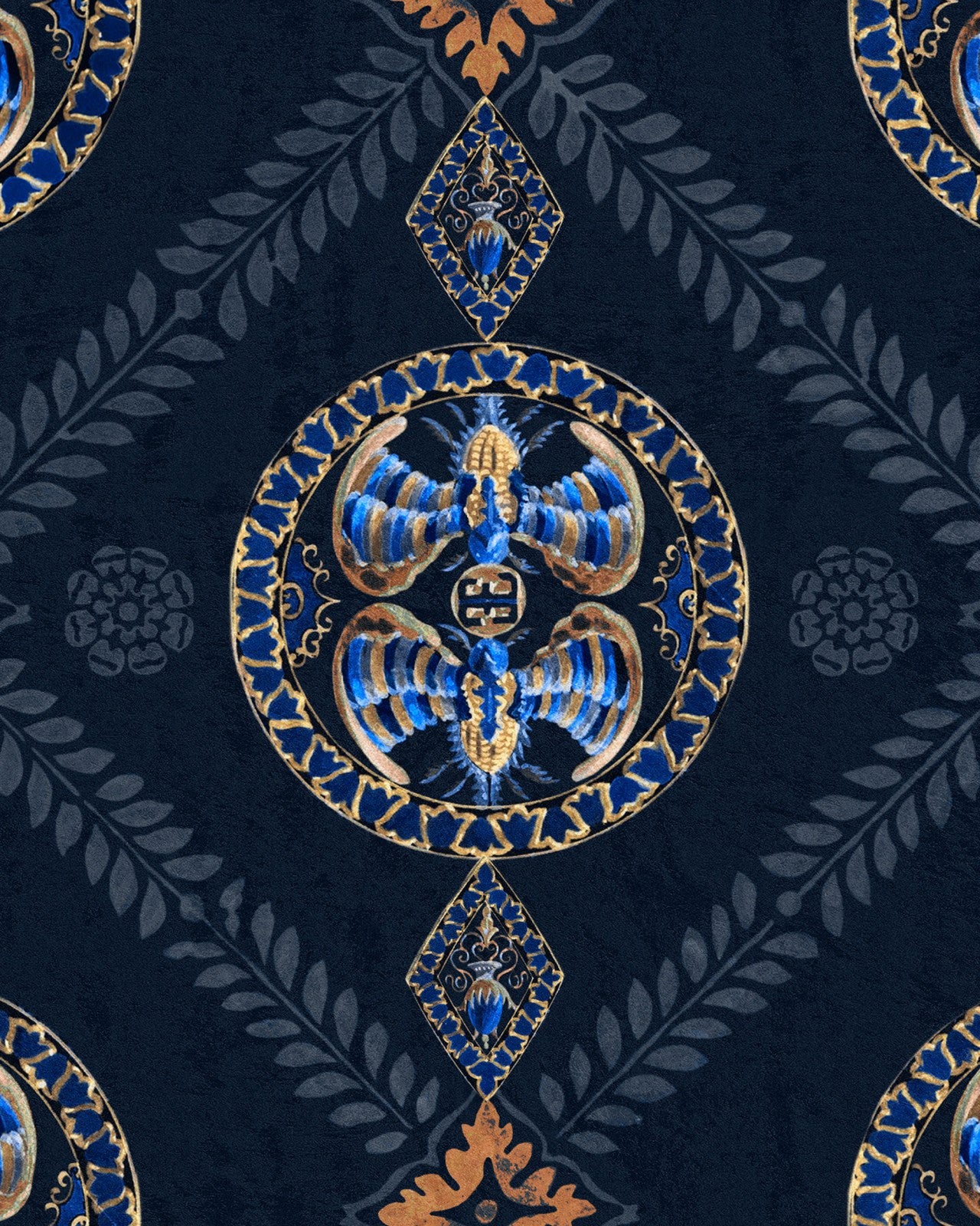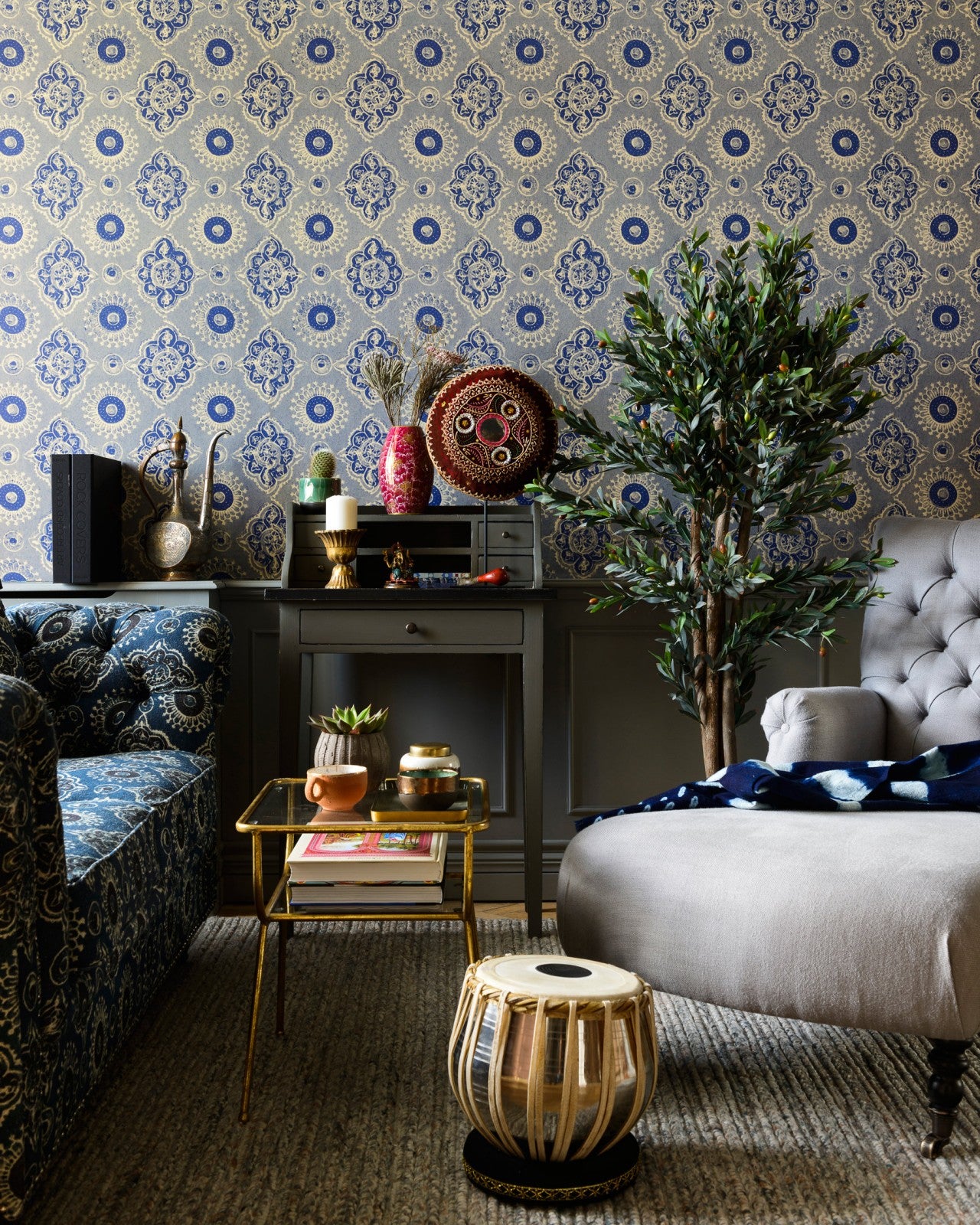 • Wallpaper, Grey, Indigo, Pink, Taupe, Yellow
