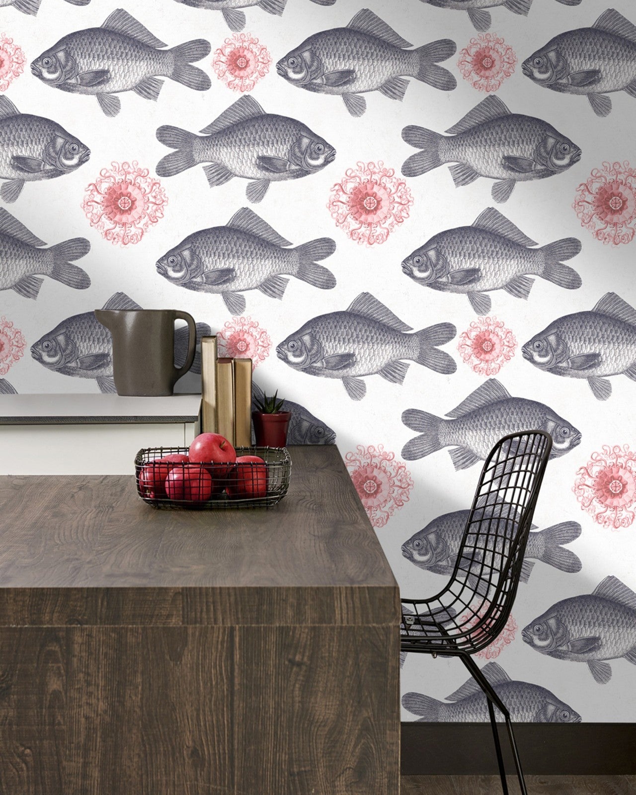 • Wallpaper, Grey, Red, Taupe, Washed Blue