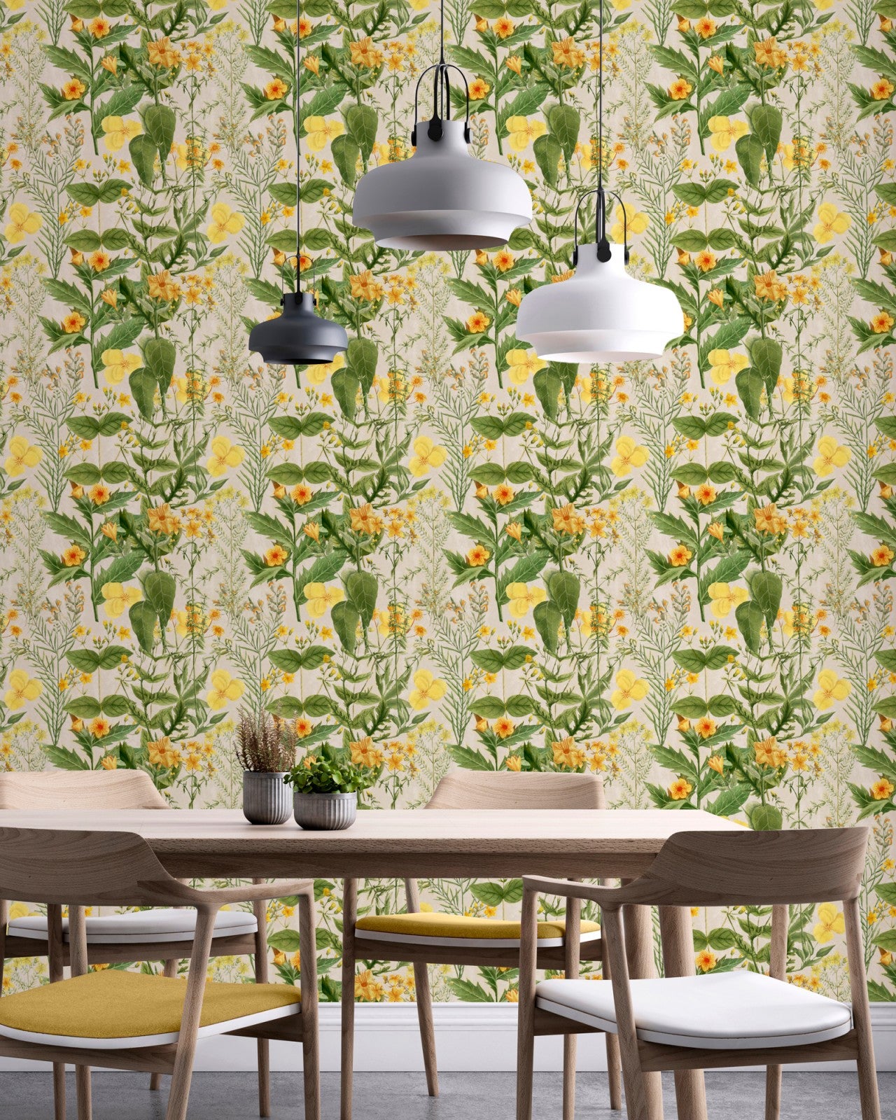 • Wallpaper, Green, Taupe, Turquoise, Yellow